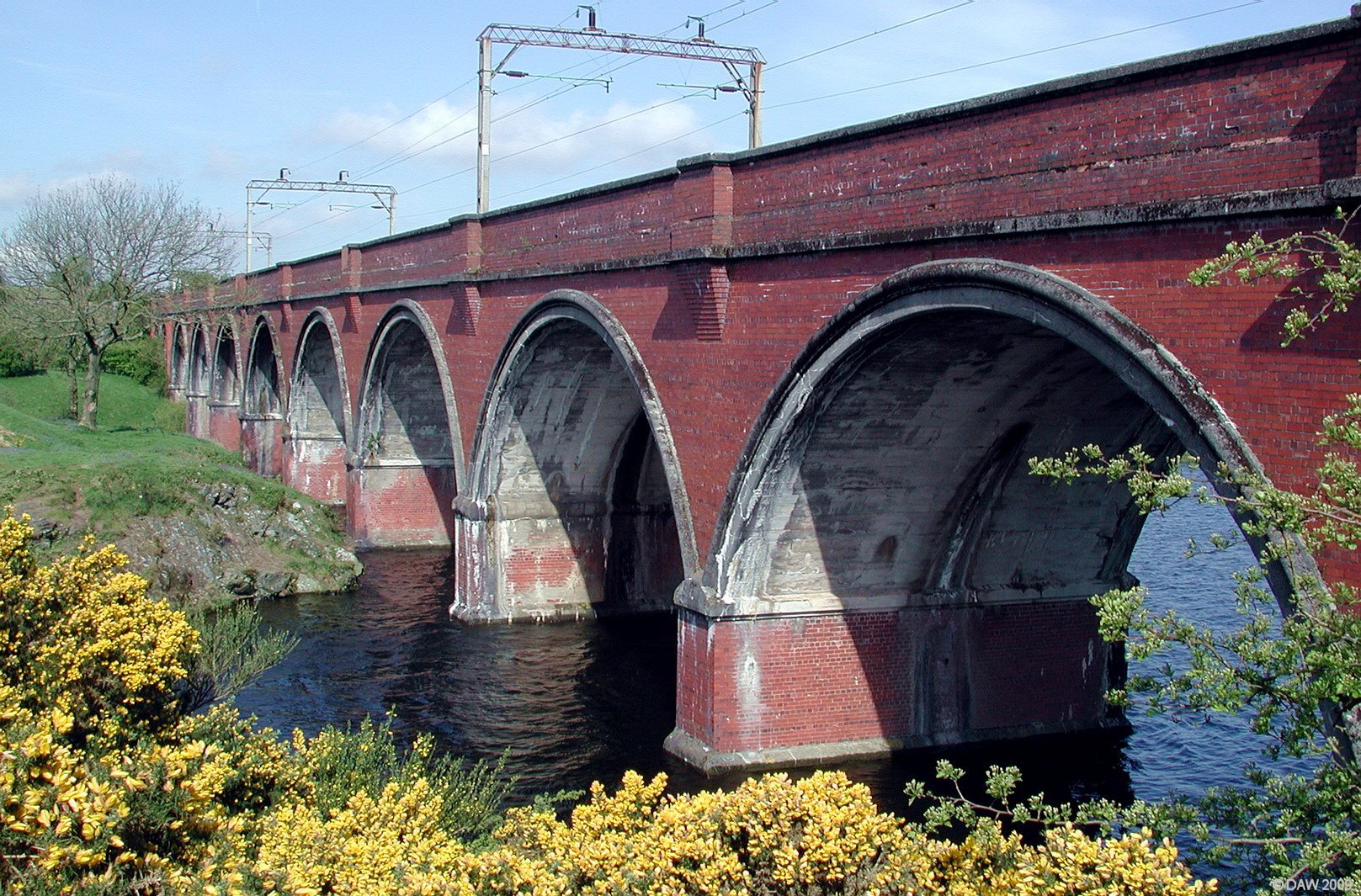 Opened in 1903 by the Lanarkshire and Ayrshire Railway it allowed coal to be transported from the pits of Lanarkshire to what was at the time the large port of Ardrossan. The link to the coast ended in the 1930's and after electrification in the 1960's the line terminated at Neilston. The bridge has a total lof 14 arches. Map location.