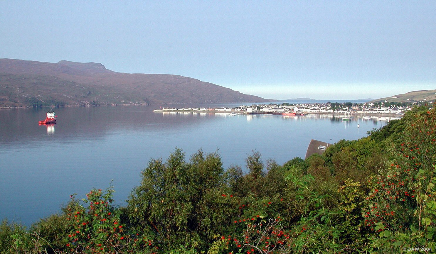 Ullapool sits on the north side of Loch Broom, another of Scotland's planned towns, designed by Thomas Telford and the British Fisheries Society in 1788. The ship at anchor is probably one of the Maritime & Coastgaurd Agency's emergency towing vessels that standby on the west coast incase any ships get into difficulty.