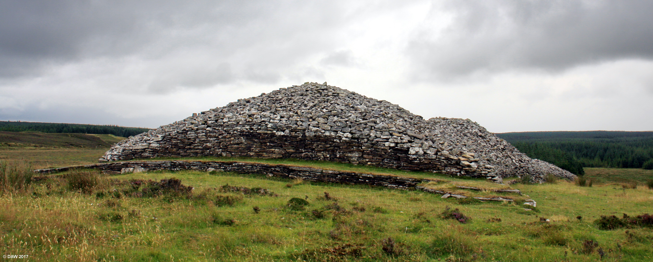 A view of one end of the Long Cairn at Camster, the grassed platform is said to be for "ritual" purposes, that generally means they don't know its purpose since there are no written records from the time it was built 5,000 years ago.