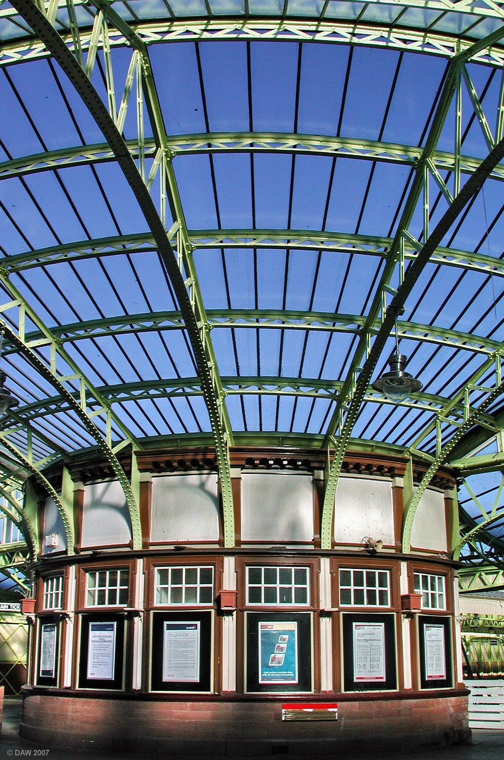 The glass conopay radiates outwards from this circular building at the centre of Wemyss Bay Railway station. Wemyss Bay is the terminus for the line from Glasgow where you can connect to a coat to Bute. But the journey from Glasgow is worth it just to see this Railway Station on a sunny day like this.