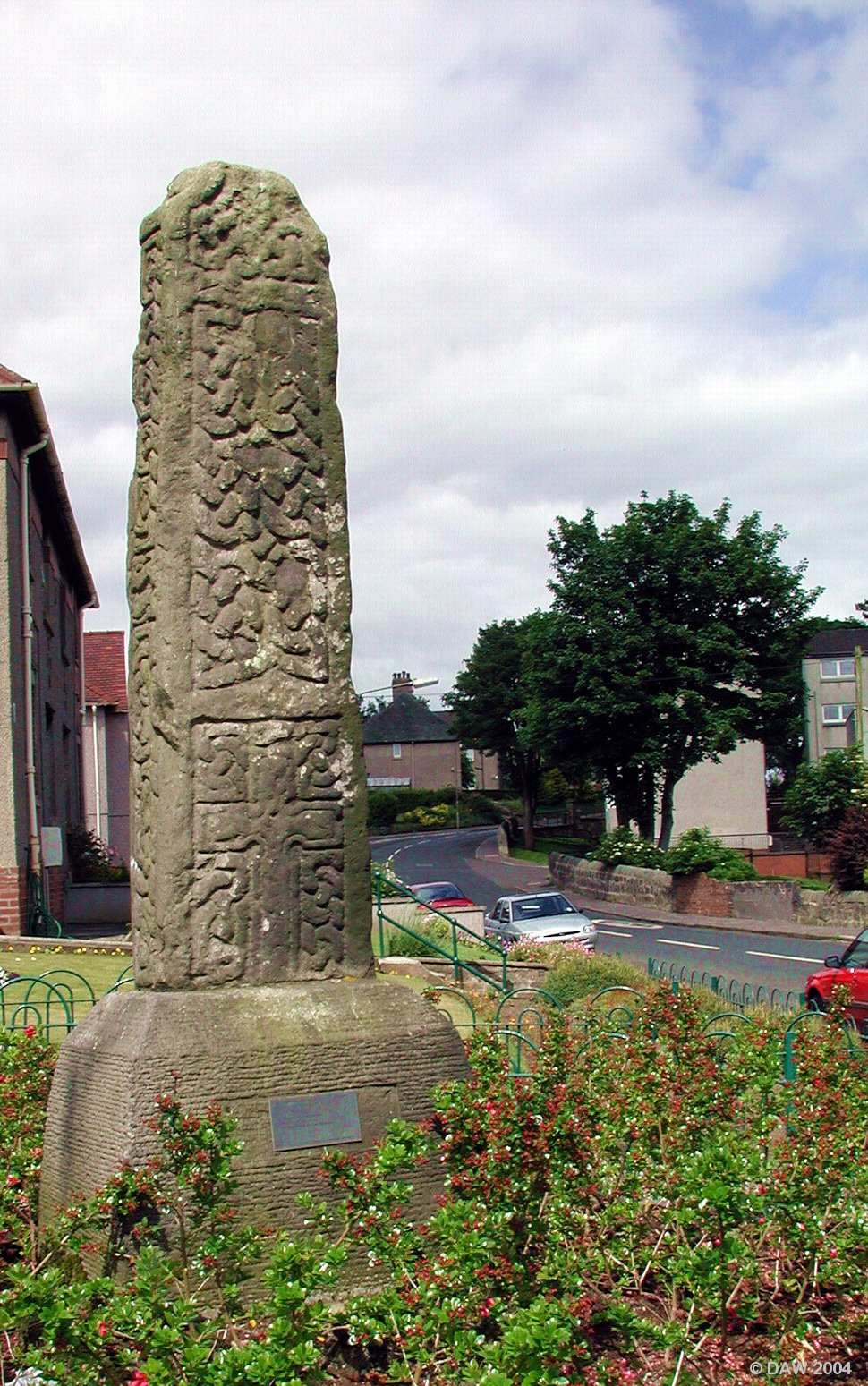 There is some debate as to the age of this celtic patterned stone but it is thought to date from at least 1452. At one time it lay across a stream as a footbridge. Today it has a prominent position on Springhill Road close to the Arthulie estate it was found on.