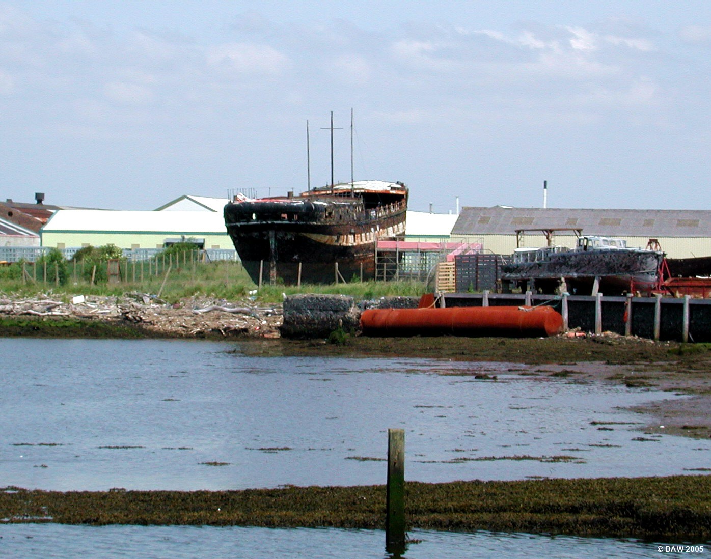 This sorry sight is the sailing ship HMS Carrick, launched in Sunderland in 1864 as The City of Adelaide.  She was designed to carry cargo and passengers between London and Adelaide, Australia.  In 1923 she was purchased by the Royal Navy and fitted out here at Irvine to become a training ship.  In 1990 during a move she sank and remained  submerged for 13 months in what could arguably be called an act of corporate vandalism.  Irvine Museum bought it for £1 and are currently struggling to fund a restoration.