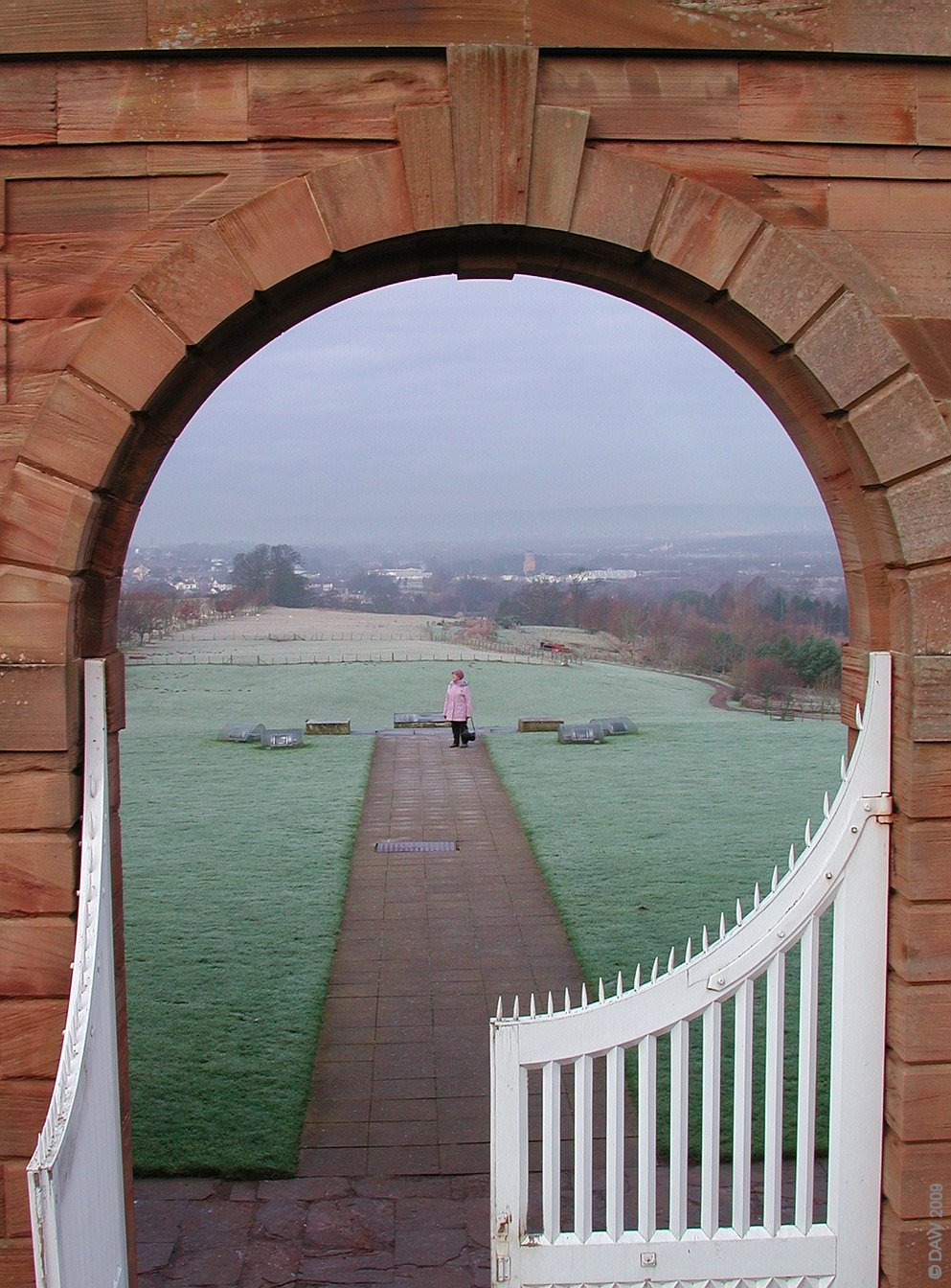The hunting lodge was built by the 5th earl of Hamilton in 1734. If you look just to the upper right of centre in the circle you can just make out the Hamilton Mausoleum down near Hamilton, the resting place of the Hamiltons. The name Chatelherault derives from a French title bestowed in 1548 on James Hamilton, the 2nd Earl of Arran (1516-75).