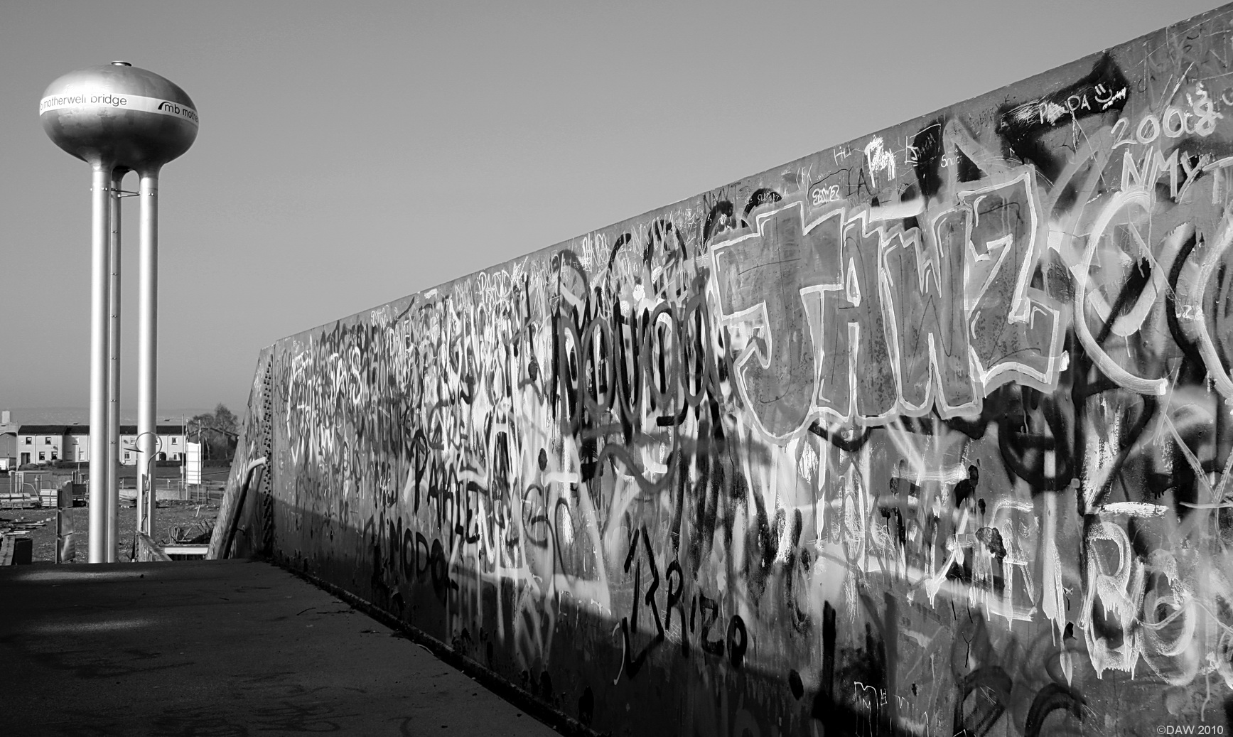 It could be a scene from War of the Worlds but its actually the old water tower from the Motherwell Bridge Engineering factory, taken from a footbridge.