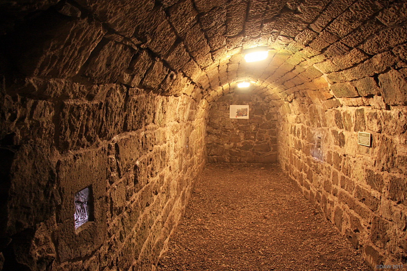 Craignethan Castle’s defences include a caponier, a stone vaulted artillery chamber which is rare in Britain. This lies inside the deep ditch that divides the tower house from the rest of the castle. Any attempt to cross the ditch would have been met by artillery fire from the holes in this vaulted tunnel.