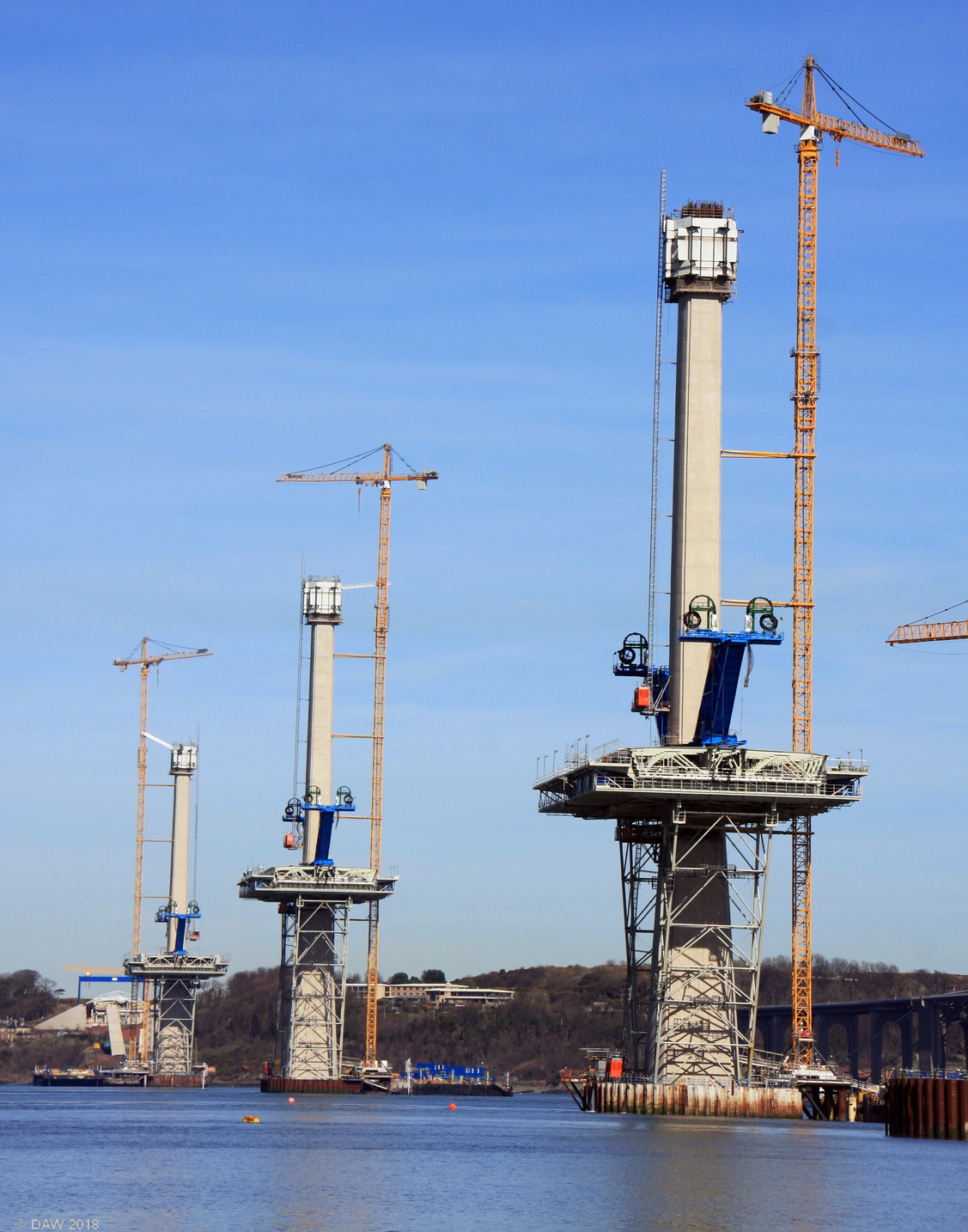 Taken in April 2015 from the south Queensferry side of the river. The towers are still rising, by August of the same year the towers reached 160m, making them the highest bridge towers in the UK, the completed towers are 2017m (679ft)