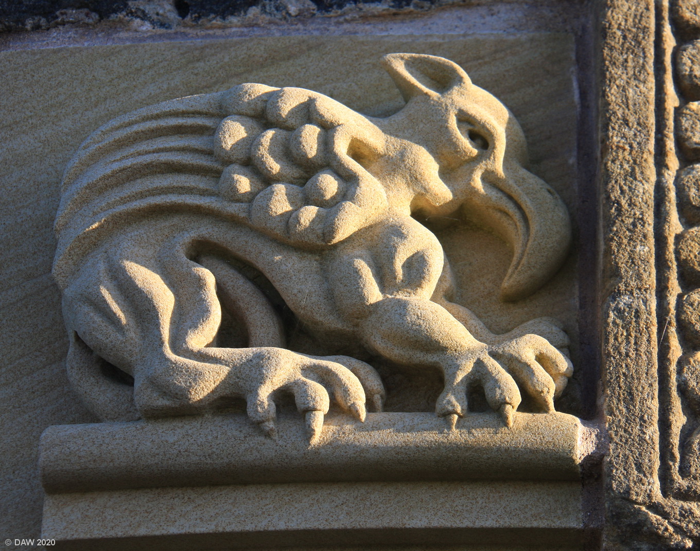 There are two similar carvings just below the door, this photo was taken in 2016 when it looked like they had been replaced. The monument was built in 1912 to commemorate the Battle of Largs in 1263 between the Scots and Norwegians. It was more of a skirmish than a battle with only a small part of the large Norwegian force being engaged but it was enough to force the Norwegian fleet to leave the Clyde.