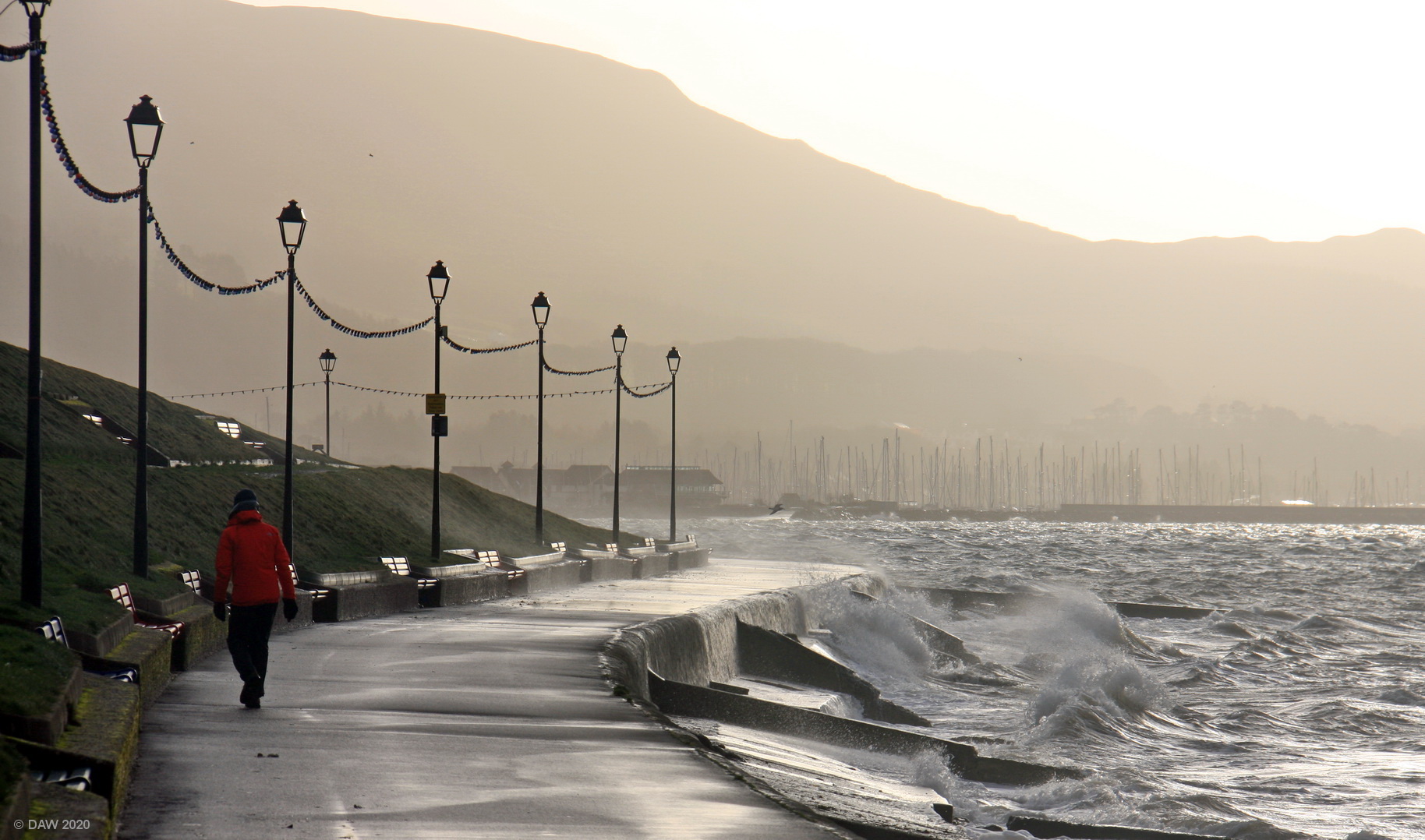 A windswept Largs Prom in winter.