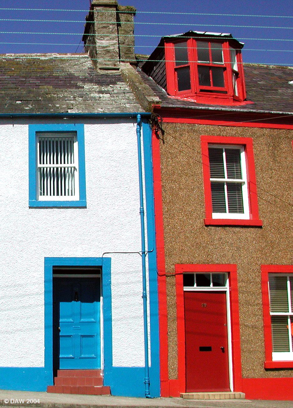 I can hardly believe that these houses, painted in such joyful colour schemes, are in Scotland. I associate such colours with the countries around the Mediterranian Sea not with "dour" old Scotland. Was there a paint sale in those colours? Who cares; it is lovely to look at!