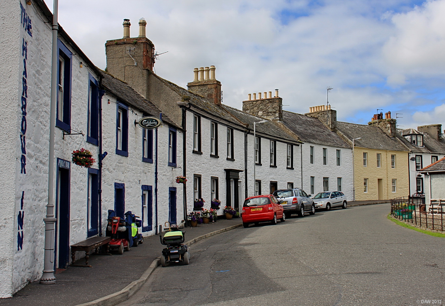 The peaceful little village of Garlieston. Garlieston dates from the 1780s when Lord Garlies built a port on the sheltered shores of what is today known as Garlieston Bay. In more recent times Garlieston played a vital role in the construction and testing of sections the 'Mulberry' harbour used in the landings in France during WWII in 1944. Map location.