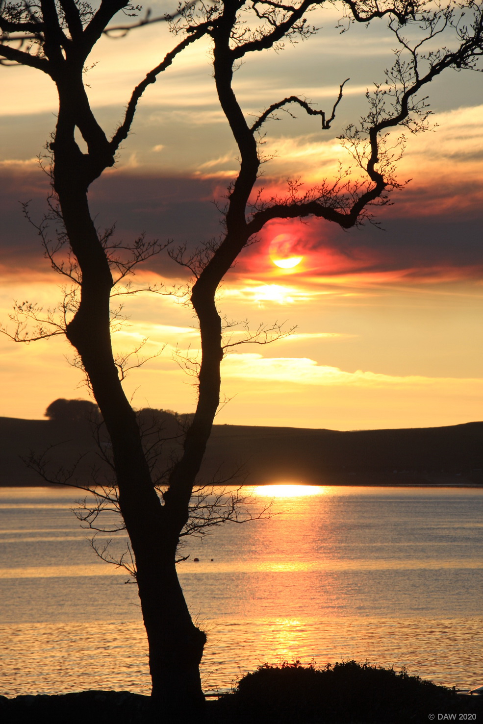 A layer of smoke from a grass fire on the Island of Bute hides the sun as seen from Largs.