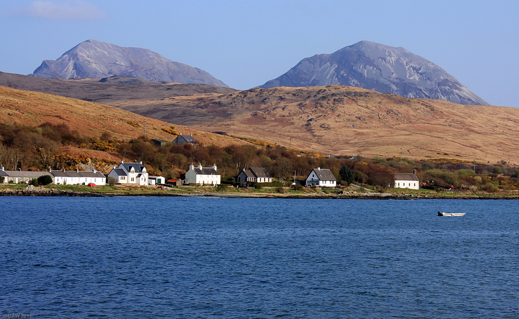 Over looking Craighouse towards the Paps, the highest of which rises to 785 metres.