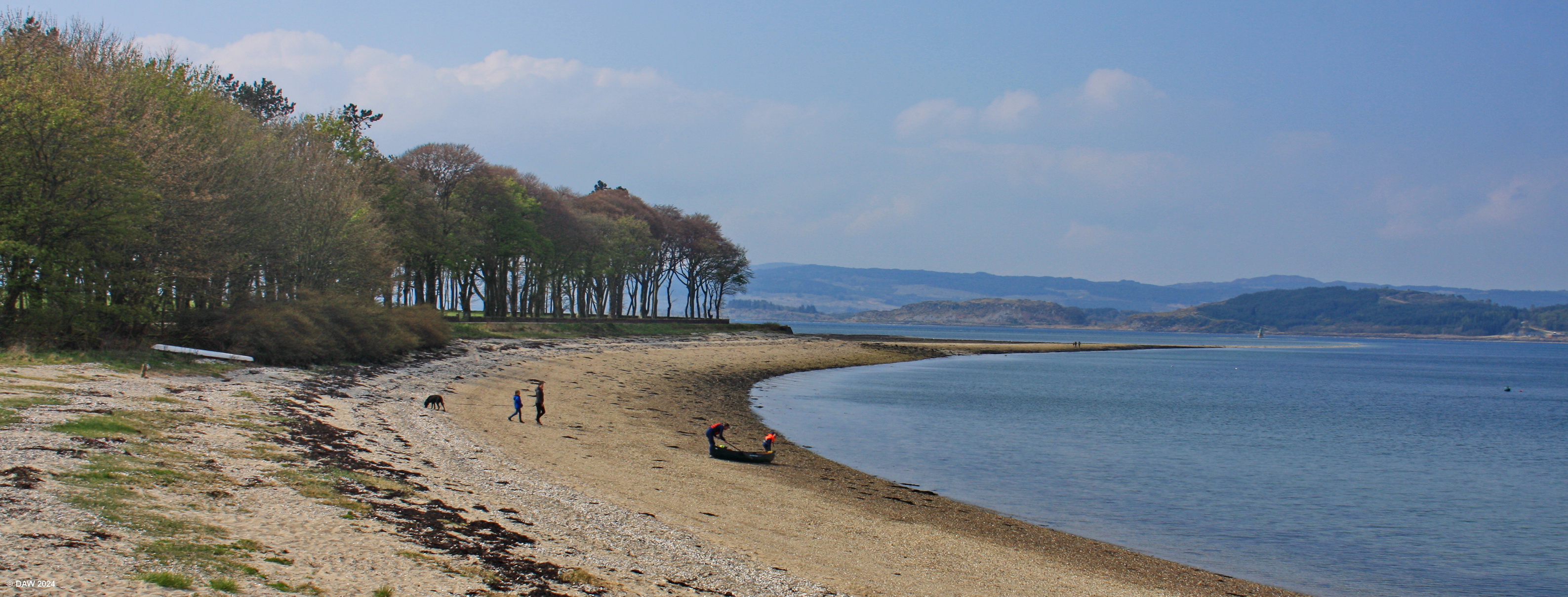Otter ferry is not named after an animal but in fact takes it name from the Gaeilic word Oitir. This refers to the sandbank you see here which extends about a mile into Loch Fyne. For over 200 years people, horses and cattle were transported across the waters of Loch Fyne here. The village of Otter Ferry grew as a result of this crossing. Map location.