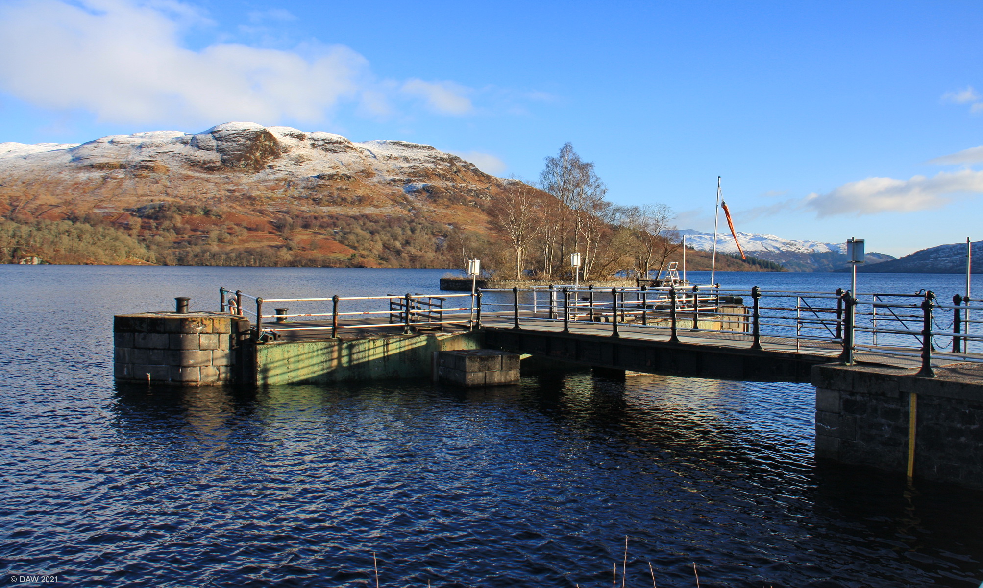 The pier at Stronachlachar, in summer time the steamer Sir Walter Scot calls in here on its cruises of the Loch.