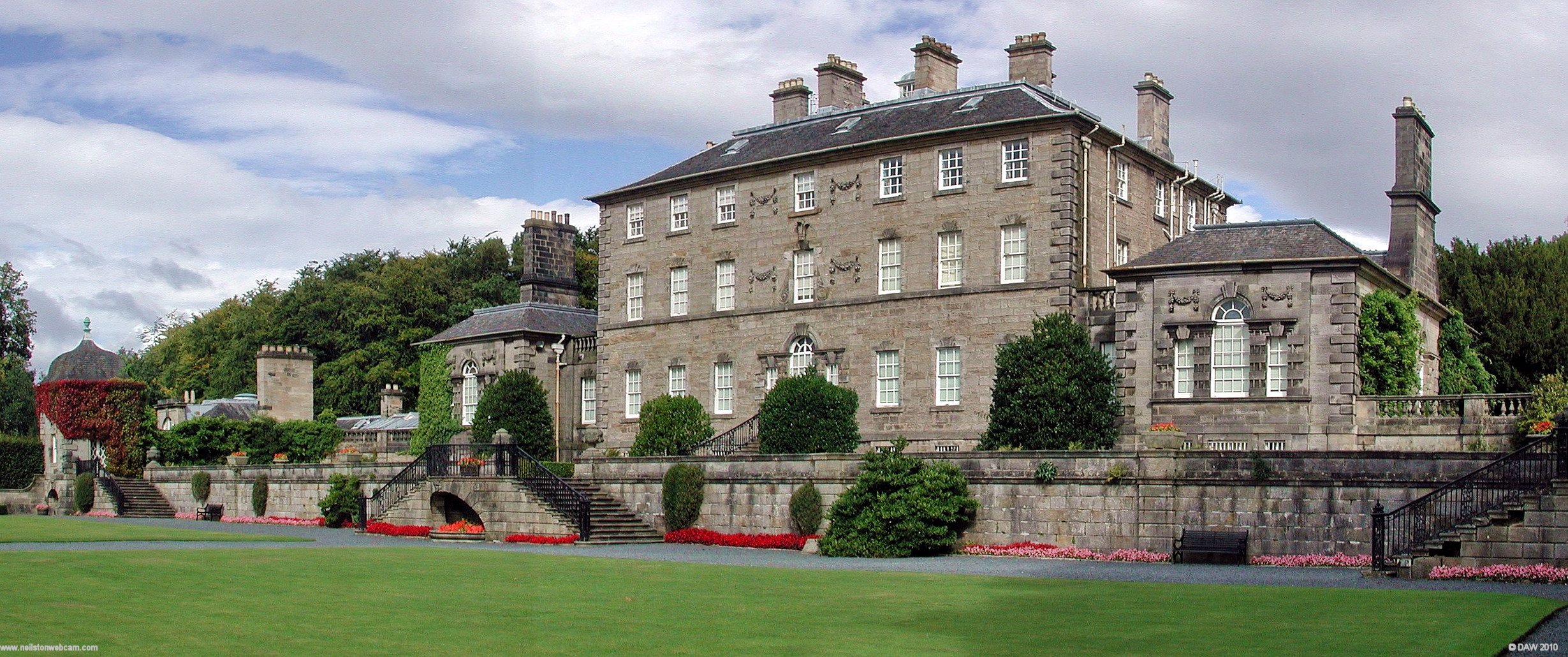 Pollock Estate has been in the hands of the Maxwells since the 13th century, before this house there were thought to have been three previous castles built by the Maxwells. In 1747 Sir John Maxwell built the house we see here today. This is a rear view from the gardens. Map location.