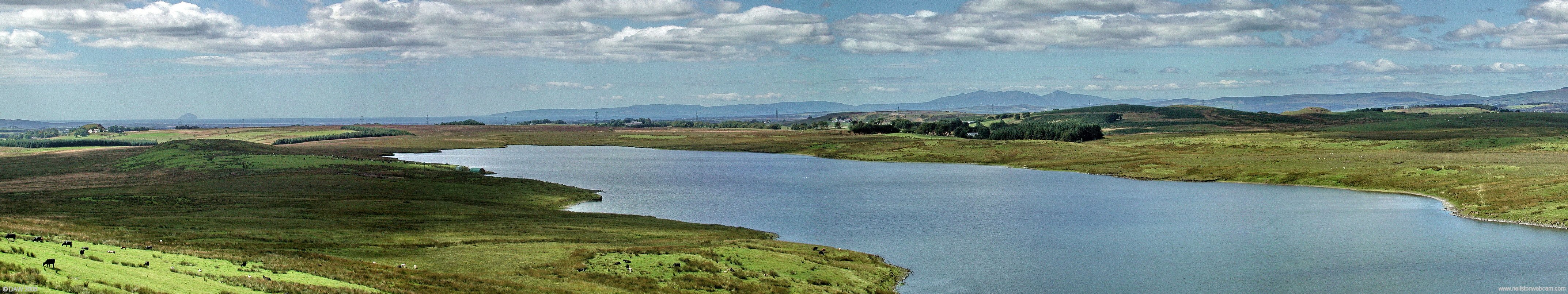 Looking west over Long Loch from James's Hill.  The Island of Ailsa Craig over 60km away can be seen on the left on the horizon.  As you move right you see the hills of the Island of Arran, you can just make out the wind farm above ardrossan below the highest peaks.  The heads of Ayr are just visible on the extreme left.  [url=http://www.streetmap.co.uk/streetmap.dll?G2M?X=248590&Y=652890&A=Y&Z=3/] Map location. [/url]