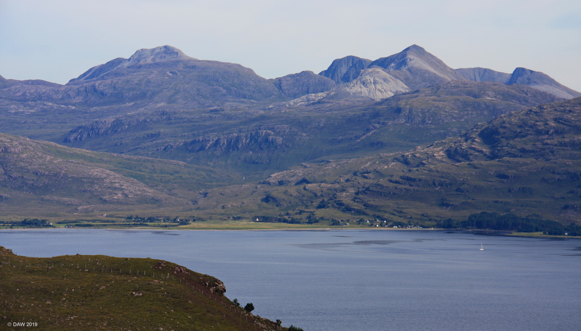 A view from the north side of Loch Torridon looking south west. The highest peak you see here is probably Maol Chean-Dearg at 933m.
