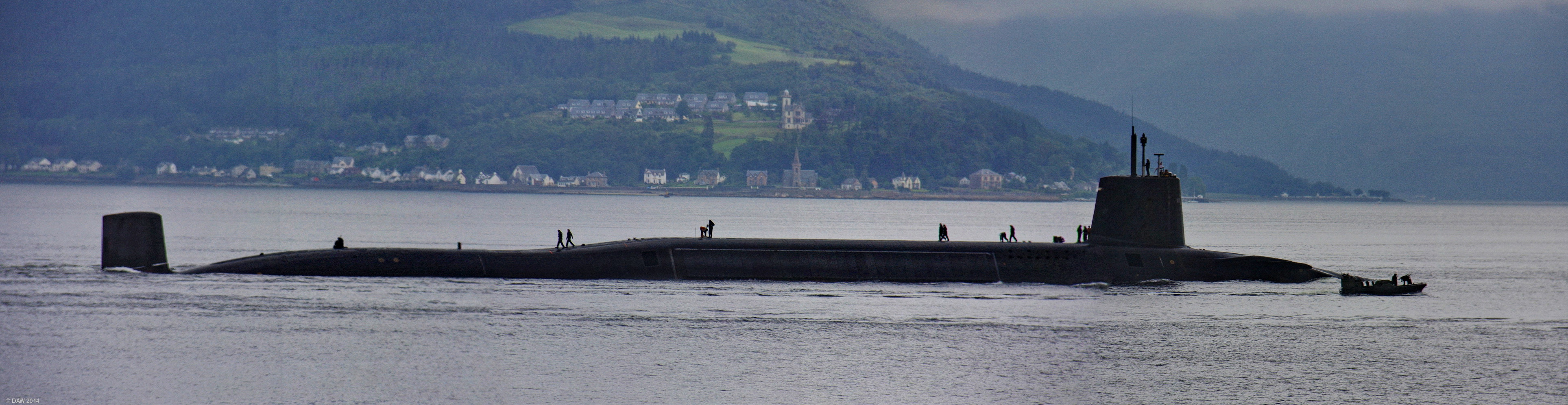 One of the Royal Navy's four Vanguard SLBM Submarines heads back up the Clyde towards Faslane.