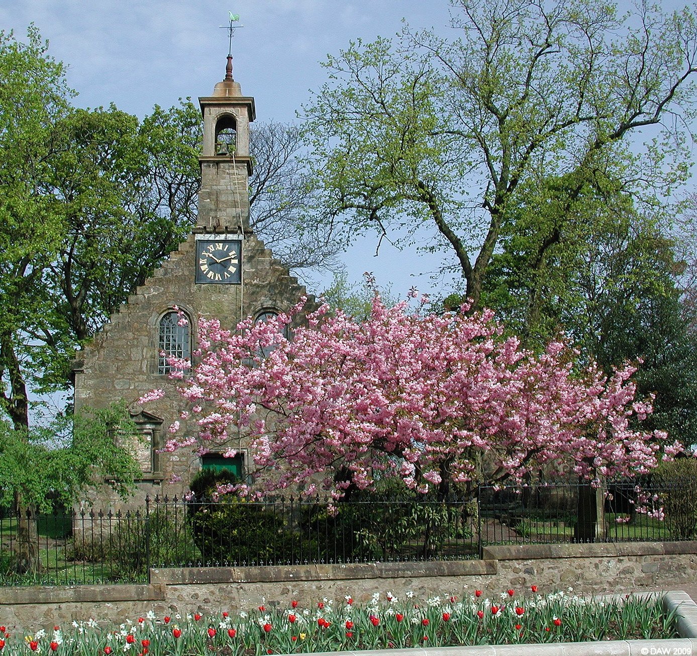 Thought to have been built around the time of the reformation it stands on the site of a much older Chapel. It was partly demolished in 1810 when a new church was built and all that remains is the front gable and belfry. Today it is an attractive feature of the improvements made to Beith town centre in recent years.