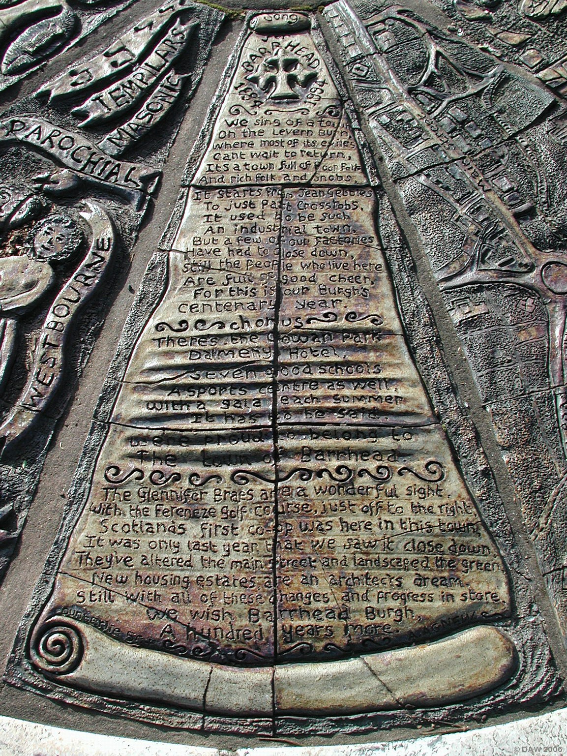 Who'd believe you could write a song for Barrhead, but here it is, part of the artwork created for Centenary Park in 1994. The words can be found