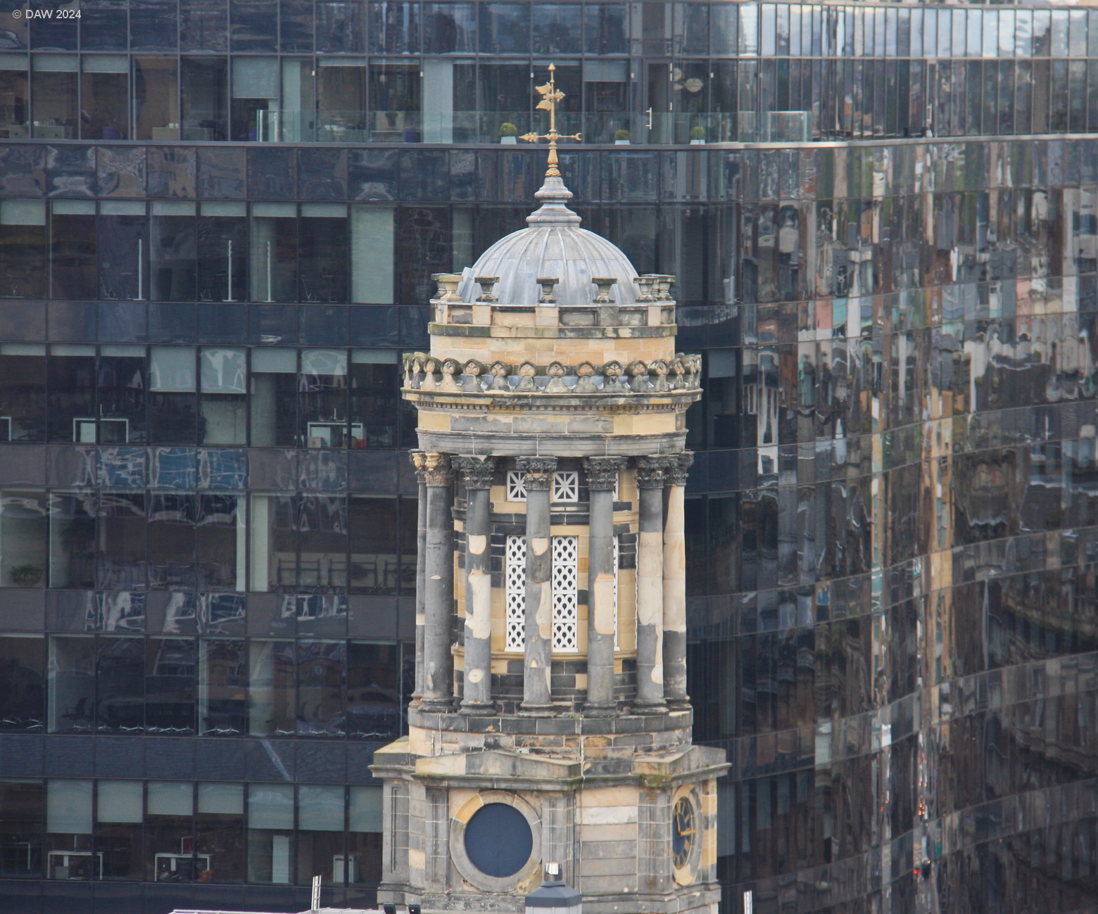 A view of the clock tower on The Gallery of Modern Art in Glasgow city centre.