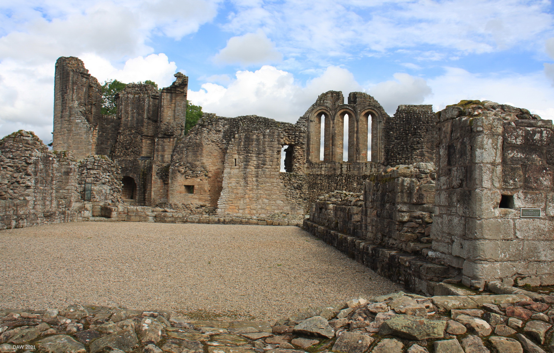 In 1306 when the castle was under seige the blacksmith in an act of treachory set fire to grain stored here in the Great Hall. The fire spread throughout the castle, forcing the garrison to surrender. A second seige in 1335 was successfully beaton off. Map location.