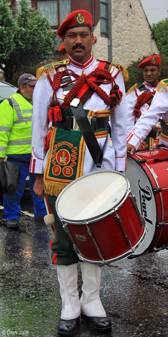 A member of the Patiala Pipe band from Pakistan poses for the camera.