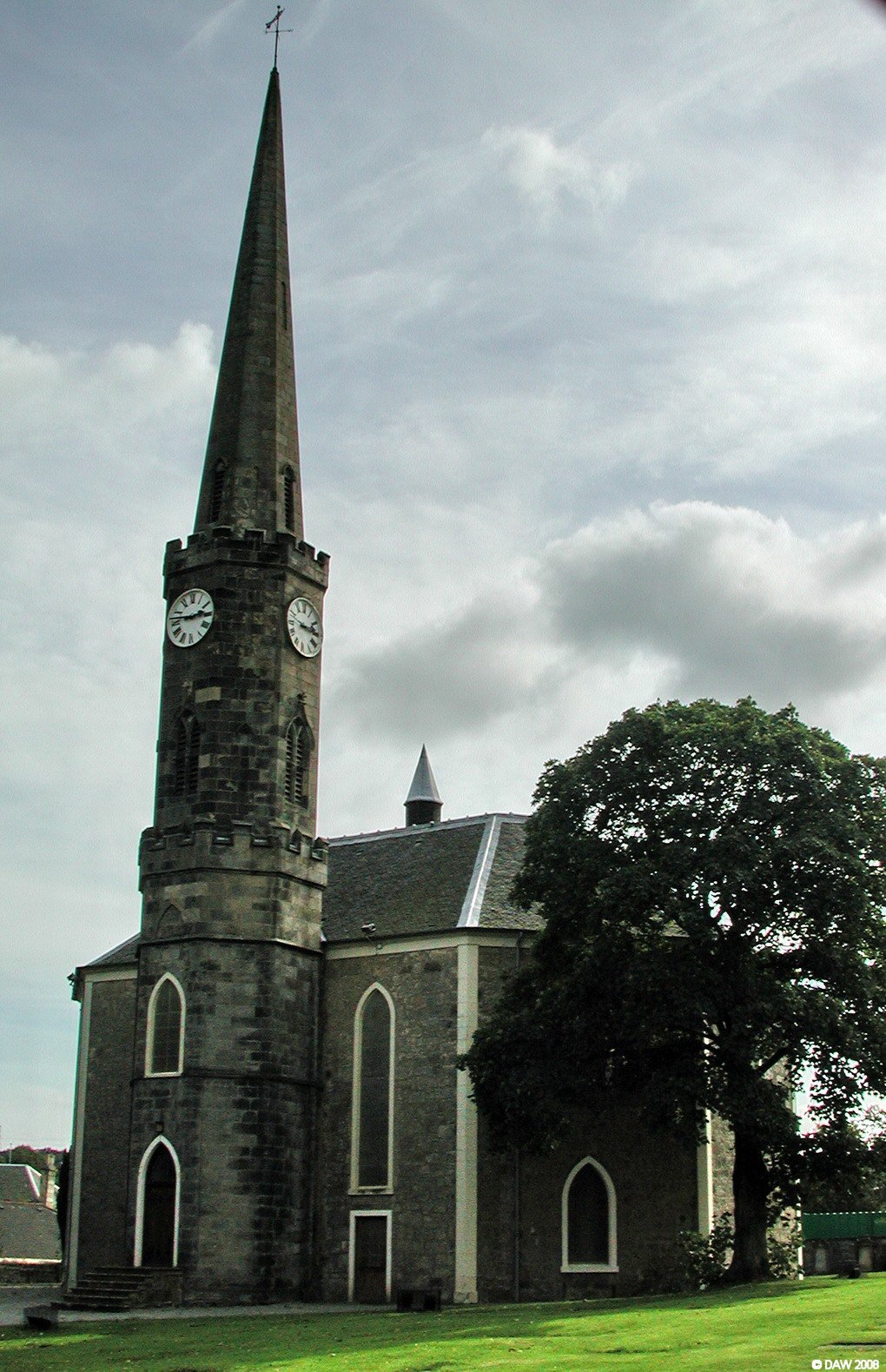 Built in 1792 with an elongated octagonal outline. The needle sprire was added in 1823.