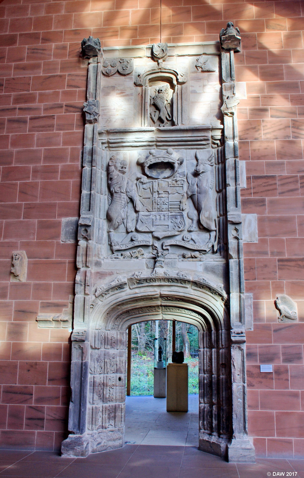 Another unusual item in the Glasgow Burrell Collection. The stone entrance from Hornby Castle in Yorkshire. When most of the building was demolished in 1930 this 16th century entrance was preserved in the Burrell Collection.