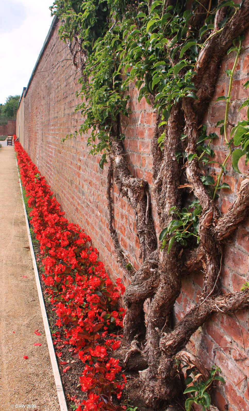When the walled garden was first built to serve Thornliebank house in the late 19th century there would have been heated greenhouses along this wall.