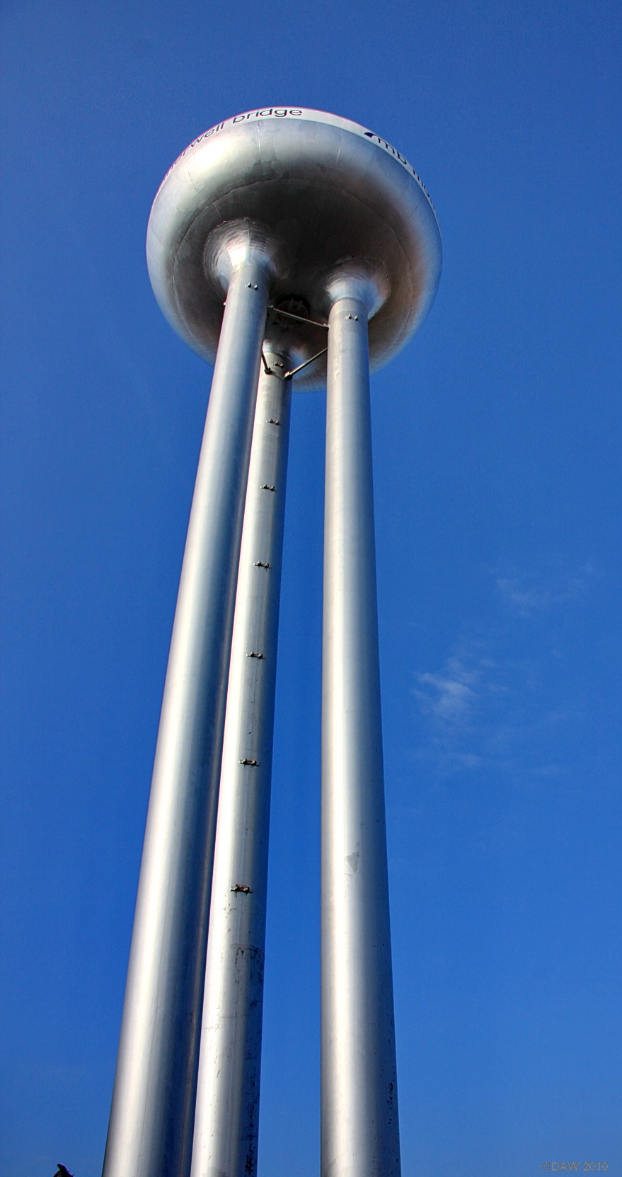 The iconic water tower of the Motherwell Bridge company in Motherwell. The Engineering firm was established in 1898, it came close to collapse in 2006 but has since made a recovery. Some of the factory became surplus and land was sold for housing, including the bit containing this tower but it was decided to ratain the tower since it is such a land mark in Motherwell.