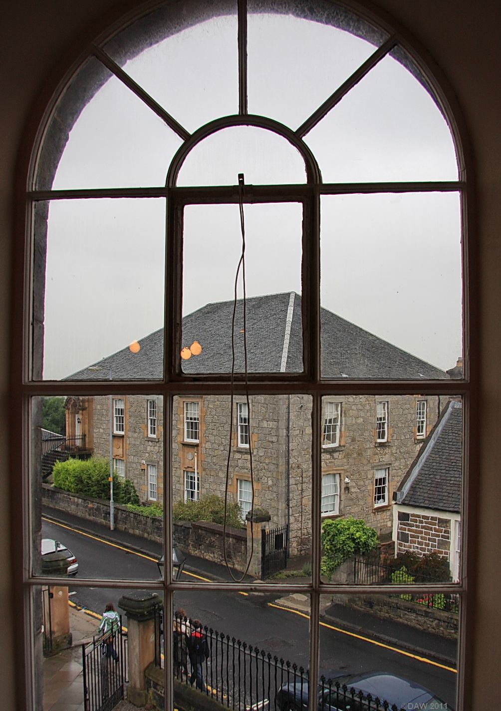Looking out from a window in the High Church across the street to the old Gaelic Church. It was built in 1793 by highlanders living in Paisley. At that time services were conducted in Gaelic but was under control of the High Church. In 1874 it was granted full status and became St Columba's. In 1959 the congregation moved to a new church and the old building was eventually turned in to flats.