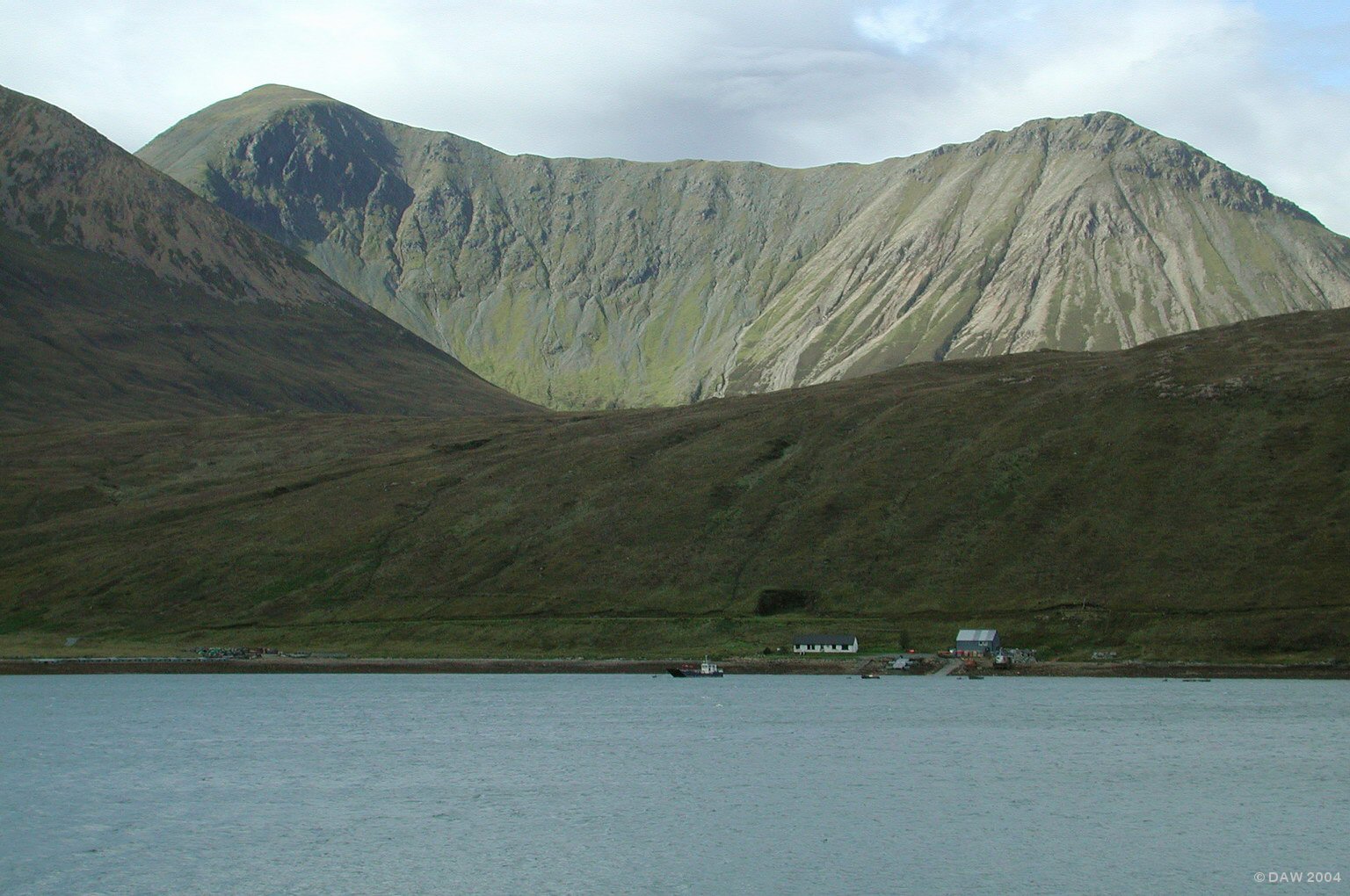 Over looking Loch Ainort with the sun on the Glamaig mountains, the highest on the left is 775m.