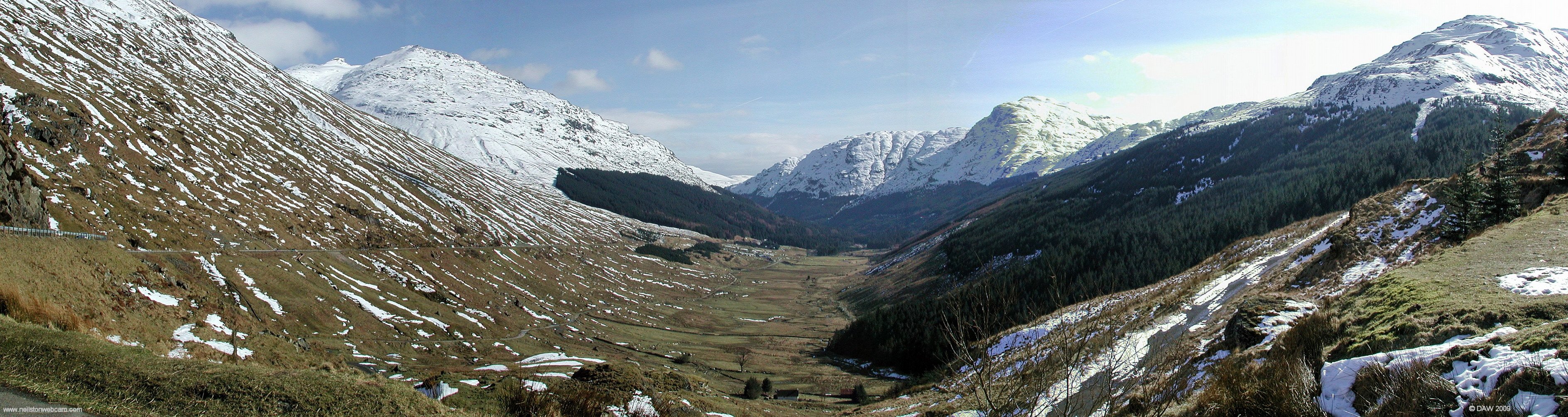 A bright but cold day at Glen Croe. General Wade's Military Road can still be seen coming up the centre of the Glen and then appearing on the right of the picture.