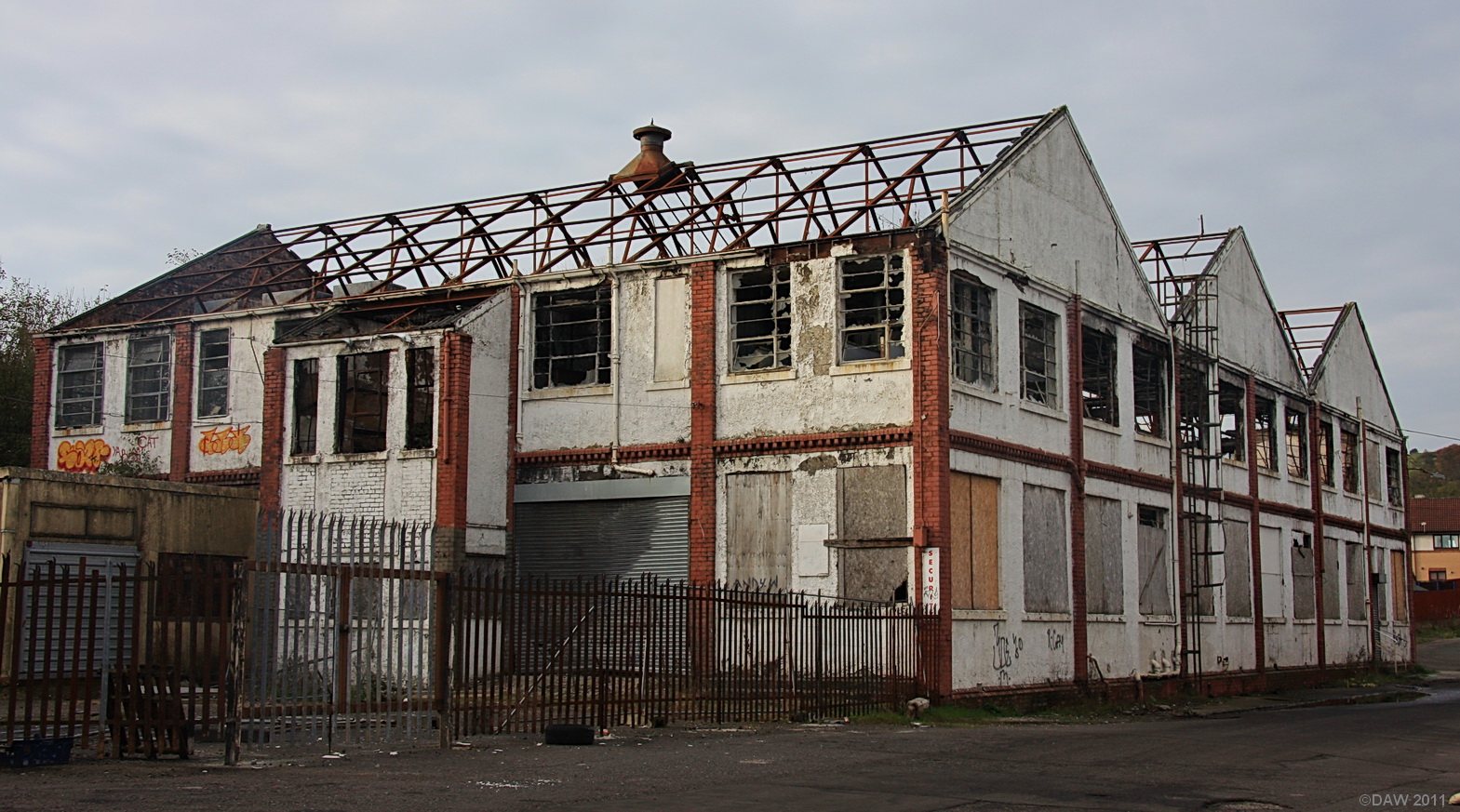The rather depressing view of what is left of the offices of the old Shanks pottery in Barrhead, in its heyday it Barrhead's largest employer and covered a vast site.  In 1969 Shanks merged with the English company of Armitage and in 1992 the Barrhead site was closed with the loss of 300 jobs.  The name Armitage Shanks still exists but all links to Barrhead are now gone.