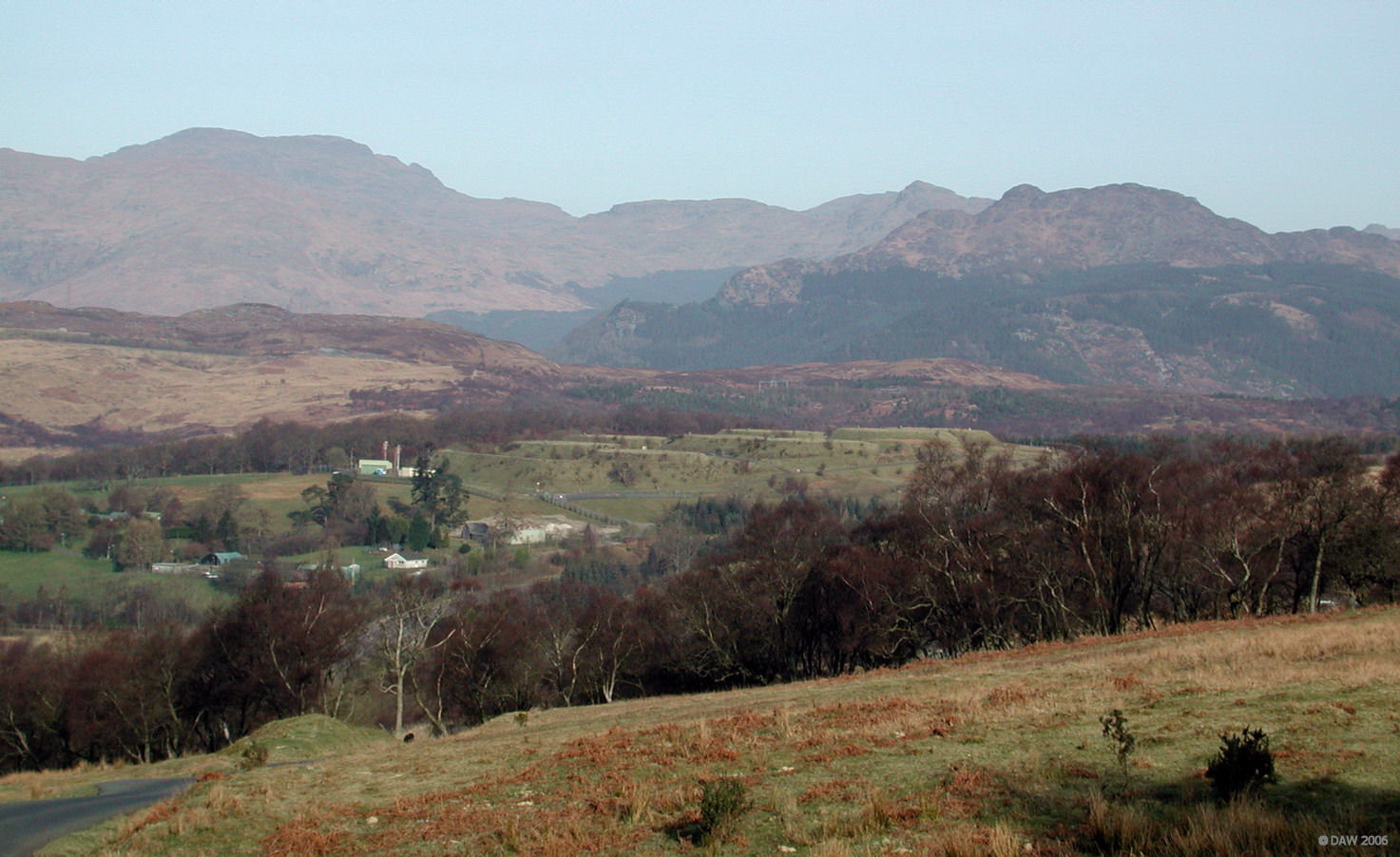 Some of the oil storage tanks on the hills above the Faslane Oil fuel storage depot. The 'Arochar Alps' are in the background.