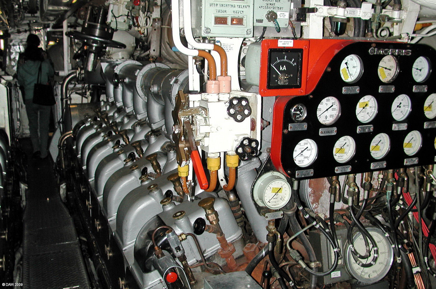 One of the disel generators on HMS Ocelot. Ocelot was one of the Royal Navy's 13 diesel electric Oberon Class submarines built between 1959 and 1964. Ocelot was based at Faslane Base on the Clyde between 1964 and 1991.