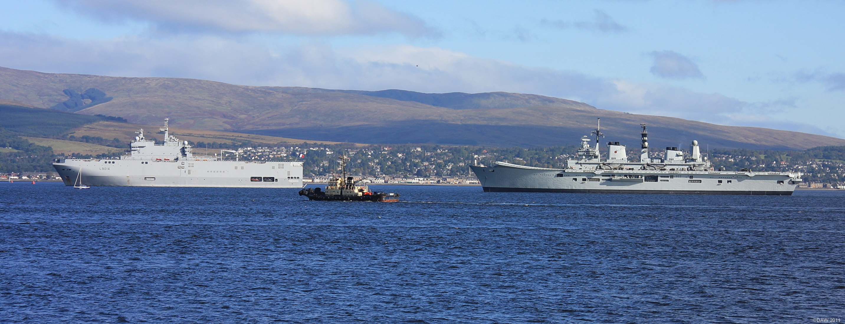Ark Royal and Tonnerre at anchor on the Clyde