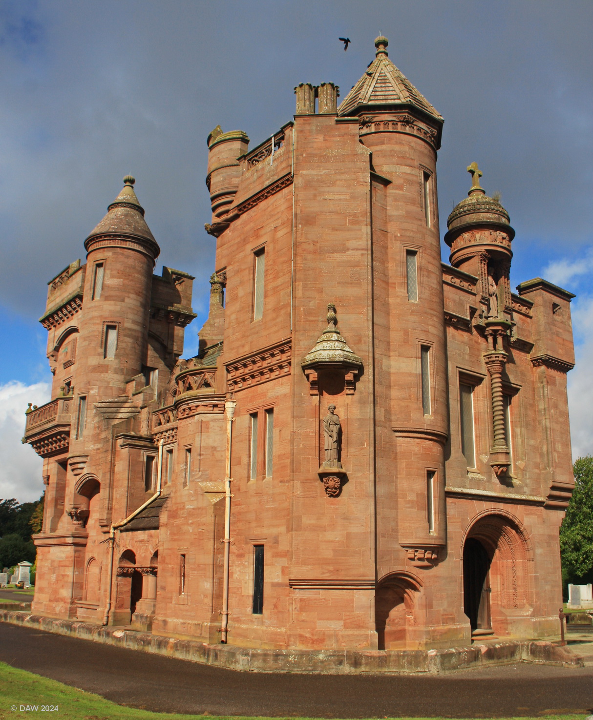 The Memorial Chapel was designed by Patrick Allan-Fraser as a memorial to his late wife Elizabeth and her deceased parents John Fraser and Elizabeth Parrot Fraser. Work start in 1875, there is very little symmetry on the outside with each side looking completely different.